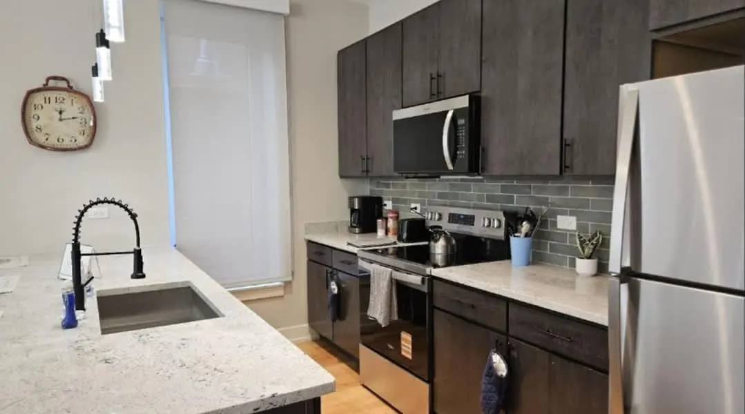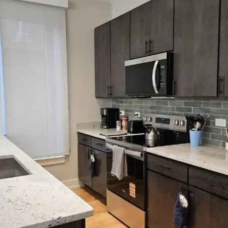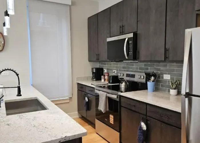 Guests can enjoy a fully-equipped kitchen with an oven and a dishwasher. Renovated 3 Bedroom Chicago Downtown Pilsen apartment is 750 metres from Western underground station and only 550 metres from Western & 16th Street bus stop.